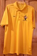 Gold golf polo shirts are available in multiple sizes with name and logo embroidered. Price is $30